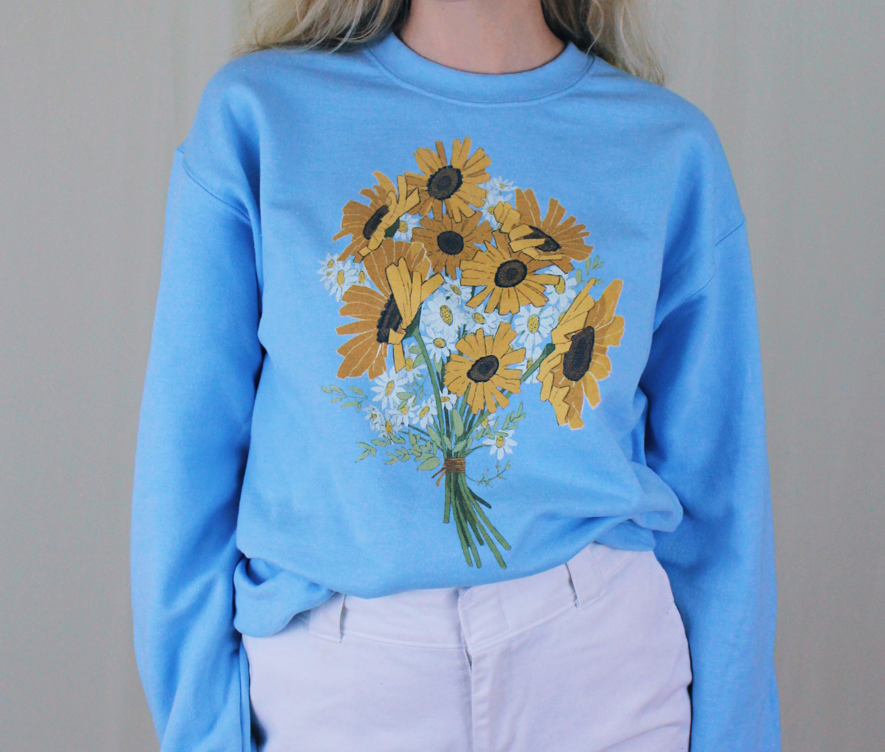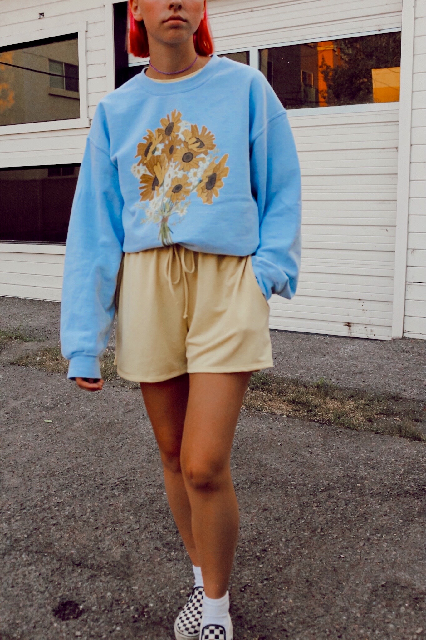 This cute cozy sunflower pullover sweater is exactly what you need to fight the cold this winter. Model is 5'9 and wearing size medium.