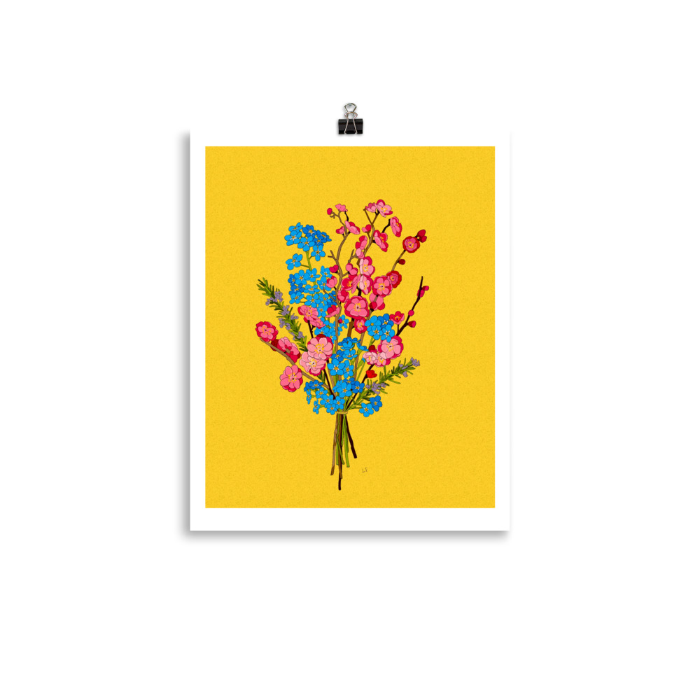 Plums blossoms and forget me nots Print