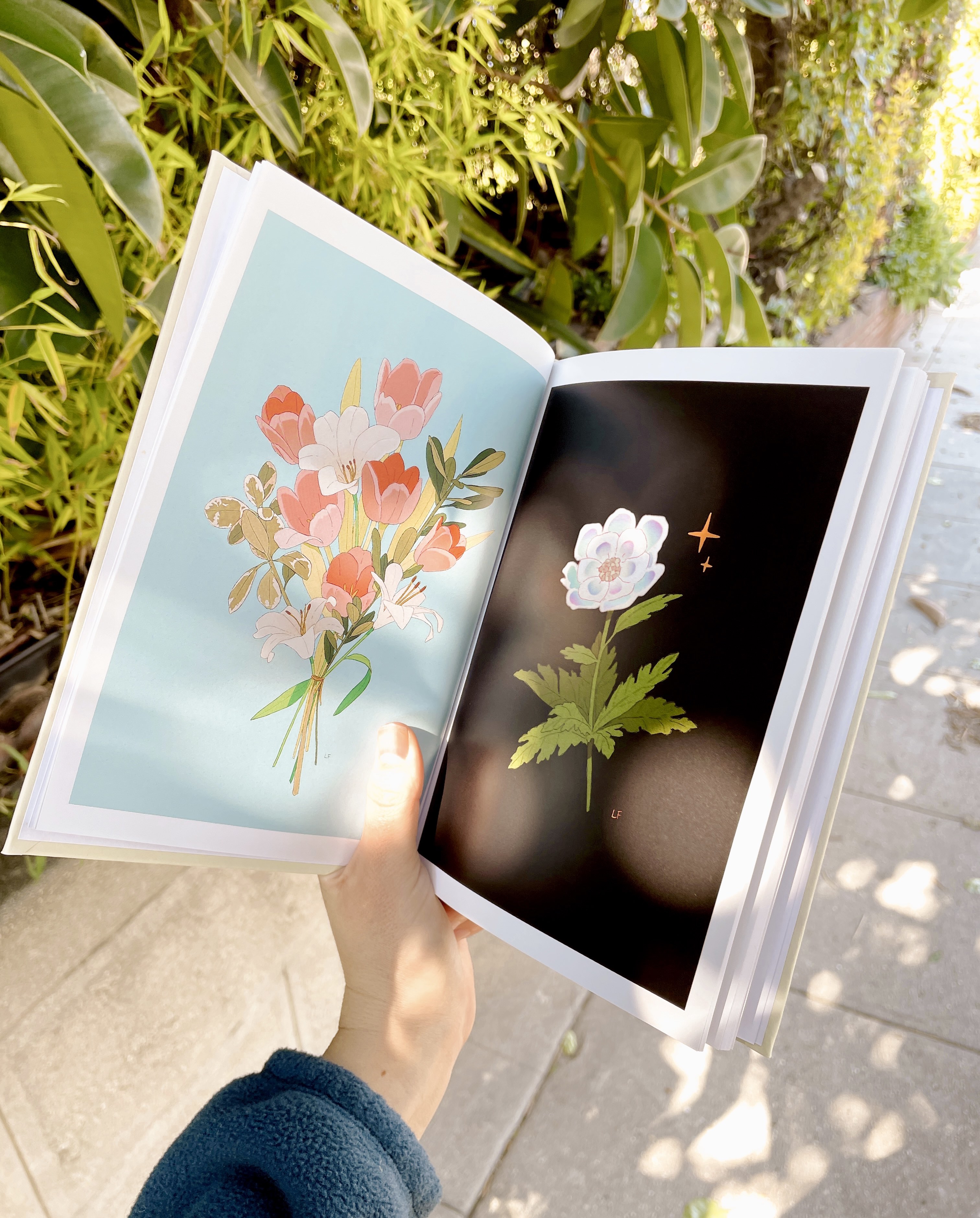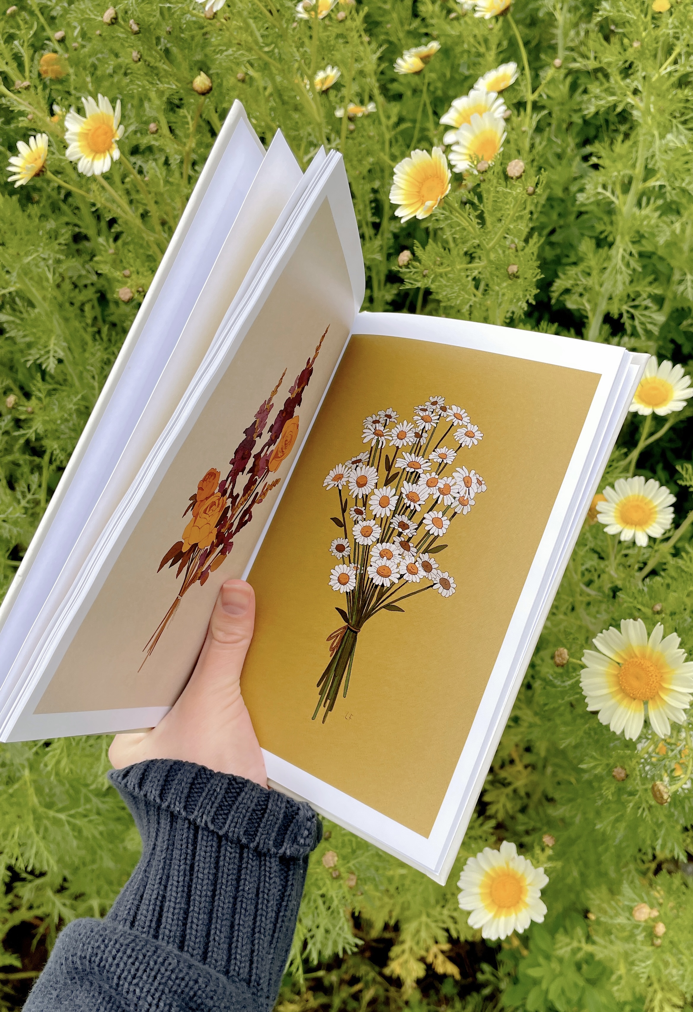 A collection of 100 floral illustrations. The book is one hundred pages, printed on premium gloss with a soft matte cover.